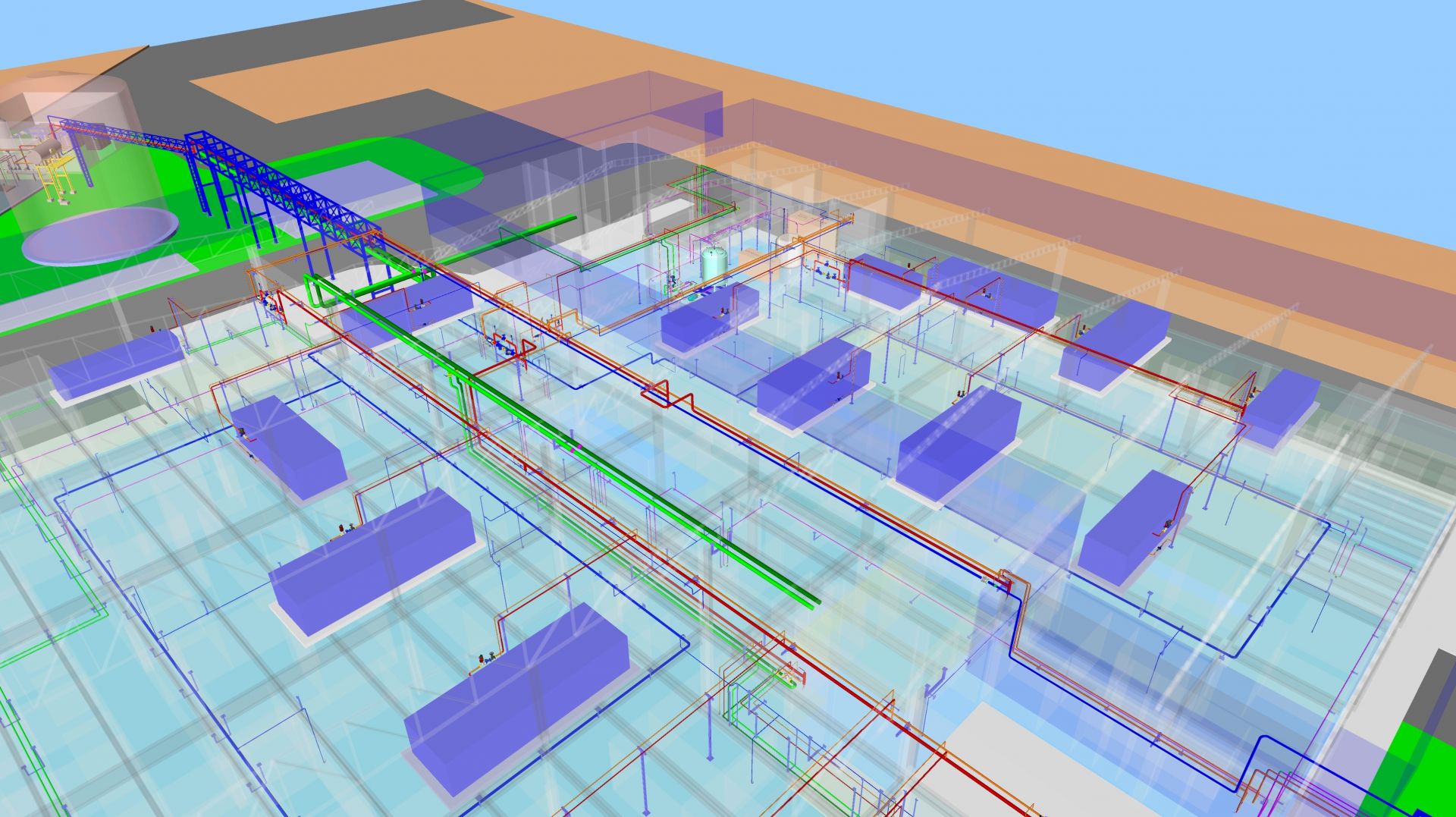Projeto Executivo de Utilidades Industriais para Indústria Farmacêutica. Foi dimensionado todas Clean Utililites (PW e Ar Comprimido de Processo) e Black Utilities (Vapor/Condensado, Água Gelada, Água Potável, Água Quente e Ar Comprimido Industrial). Projeto completo feito em Plataforma BIM todas documentações pertinentes.